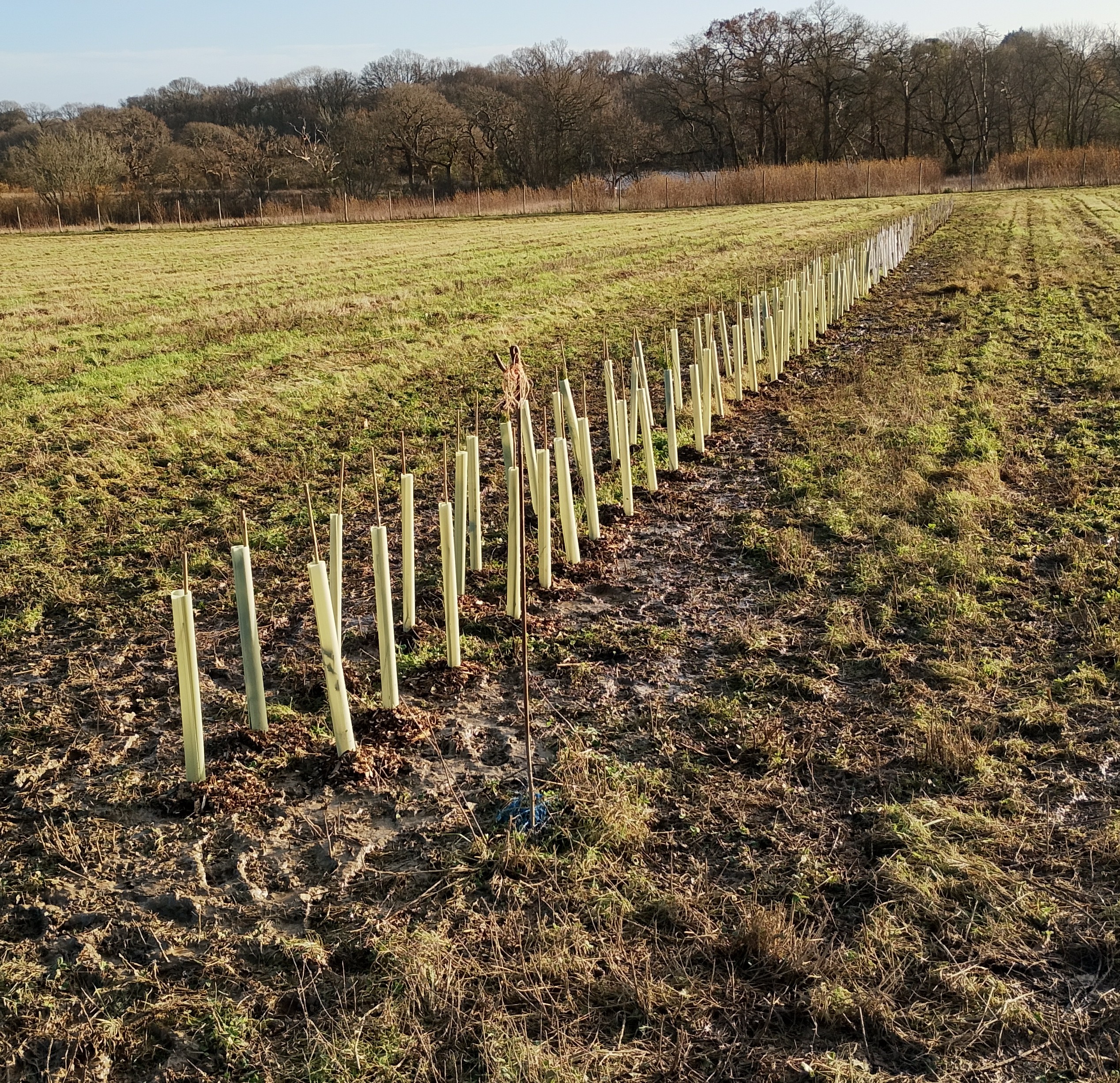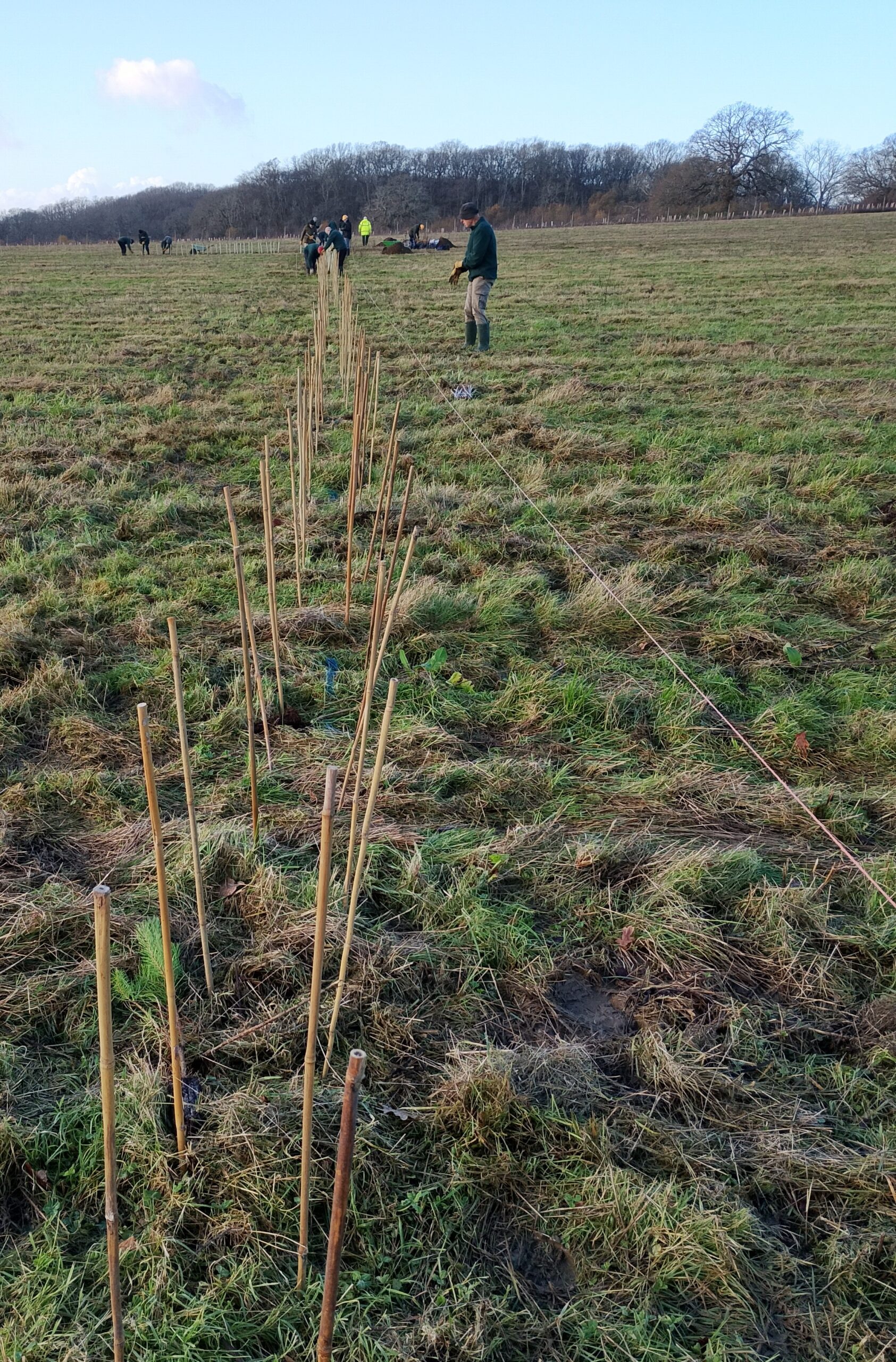 Week 2. 897 whips planted. The supply of canes and guards were exhausted before the plants were all planted. To be concluded by farm staff/volunteers.