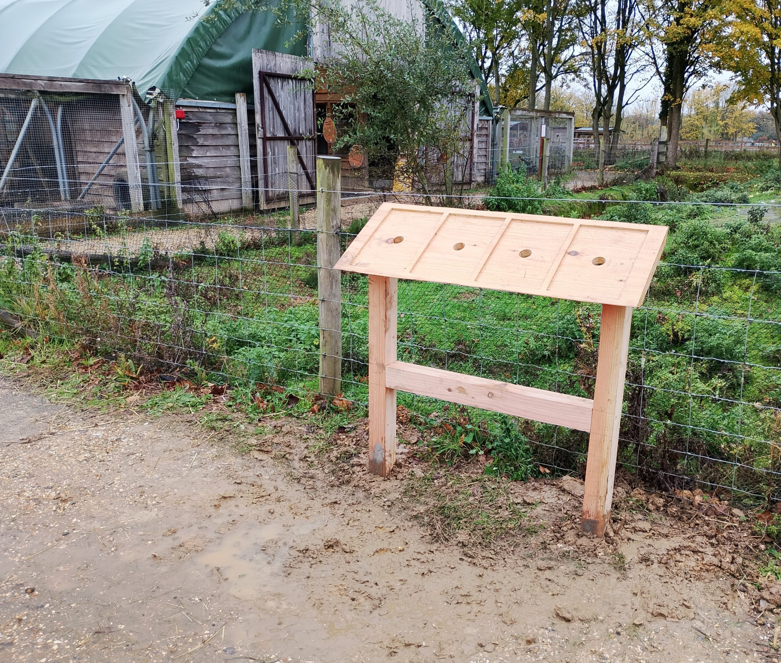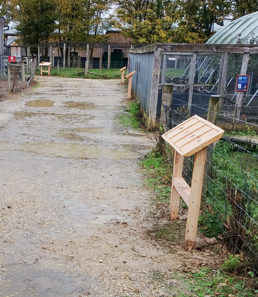 Install many 2-legged information boards around the fields and enclosures. Holes will need to be dug to accomodate 100mm square posts. Post drivers not appropriate. Postcrete to finish and disipate the excavated soil. JohnA leading.